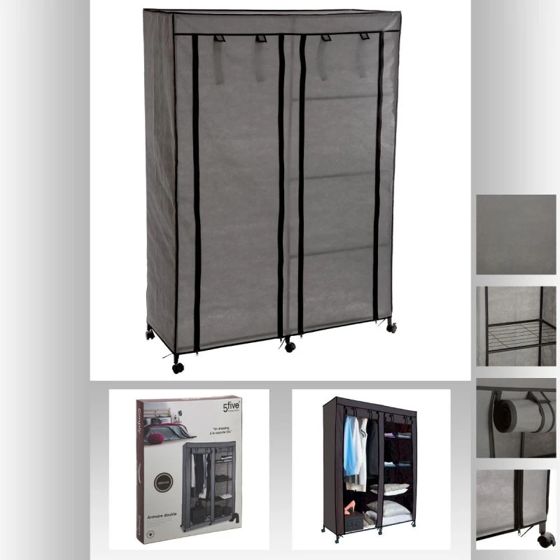 Idéal en complément dans une chambre, cette armoire de rangement grise 4 étagères et 1 penderie en tissu deviendra rapidement un élément incontournable pour gagner de la place dans des petits espaces.
