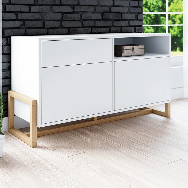 ApprĂ©ciez le style rĂ©solument contemporain de ce buffet 1 tiroir 2 portes Oslo coloris blanc.Â