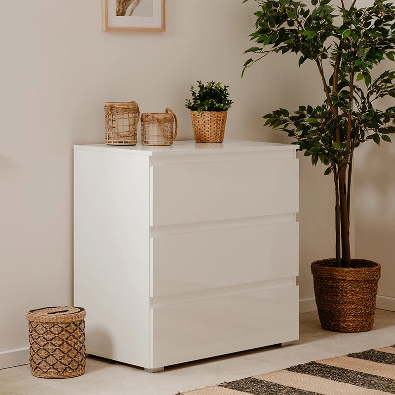 Un indispensable sobre et épuré, découvrez la commode 3 tiroirs 80 cm Capetown blanc.