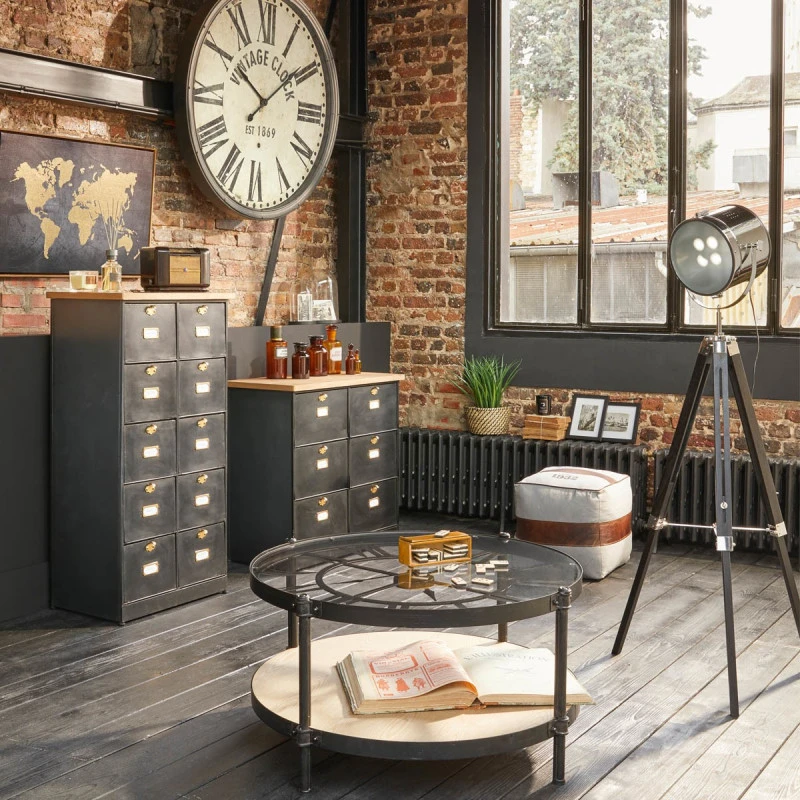 Commode à clapets dorés de la marque Atmosphera. Cette commode Ivan en bois et fer apportera une touche vintage à votre intérieur. Ces 6 grands clapets permettent un espace de rangement idéal pour votre salon ou votre salle à manger.