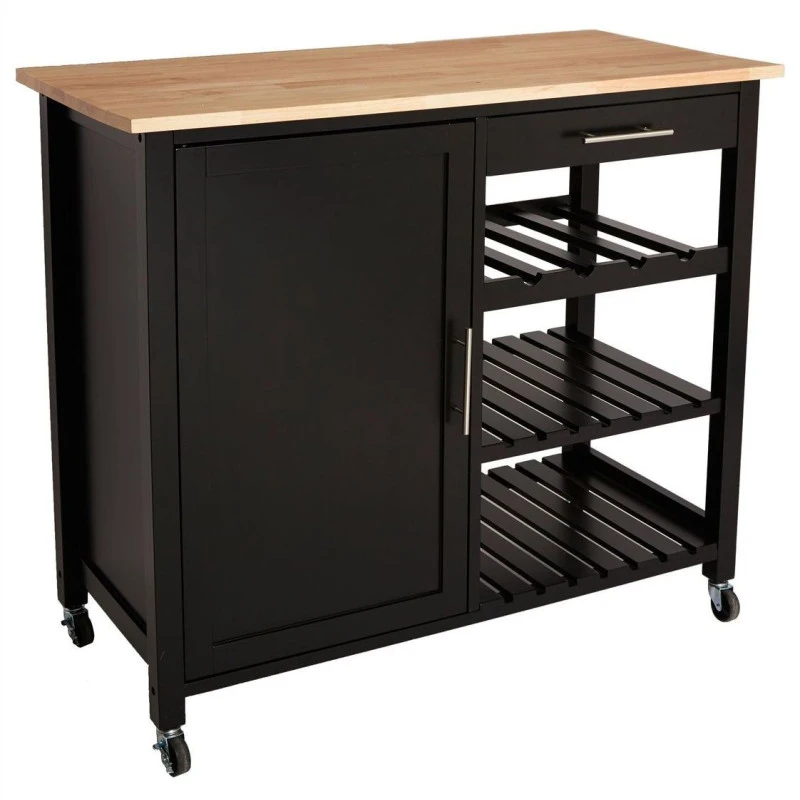 Cette desserte de cuisine noire en bois modèle CLAUDE grand modèle s’avérera très utile pour stocker de nombreux produits et ainsi tout avoir à portée de main partout où vous allez grâce à ses 4 roulettes. Grâce son tiroir, sa porte latérale et ses 3 niveaux, vous disposerez d’un petit coin agréable pour cuisiner et ranger vos accessoires. Ses 2 coloris très tendance avec le mélange du noir et du coloris bois finiront de vous convaincre. Profitez également du modèle en coloris blanc ou du petit modèle qui vous sont proposés en accessoires. A monter soi-même, notice incluse.